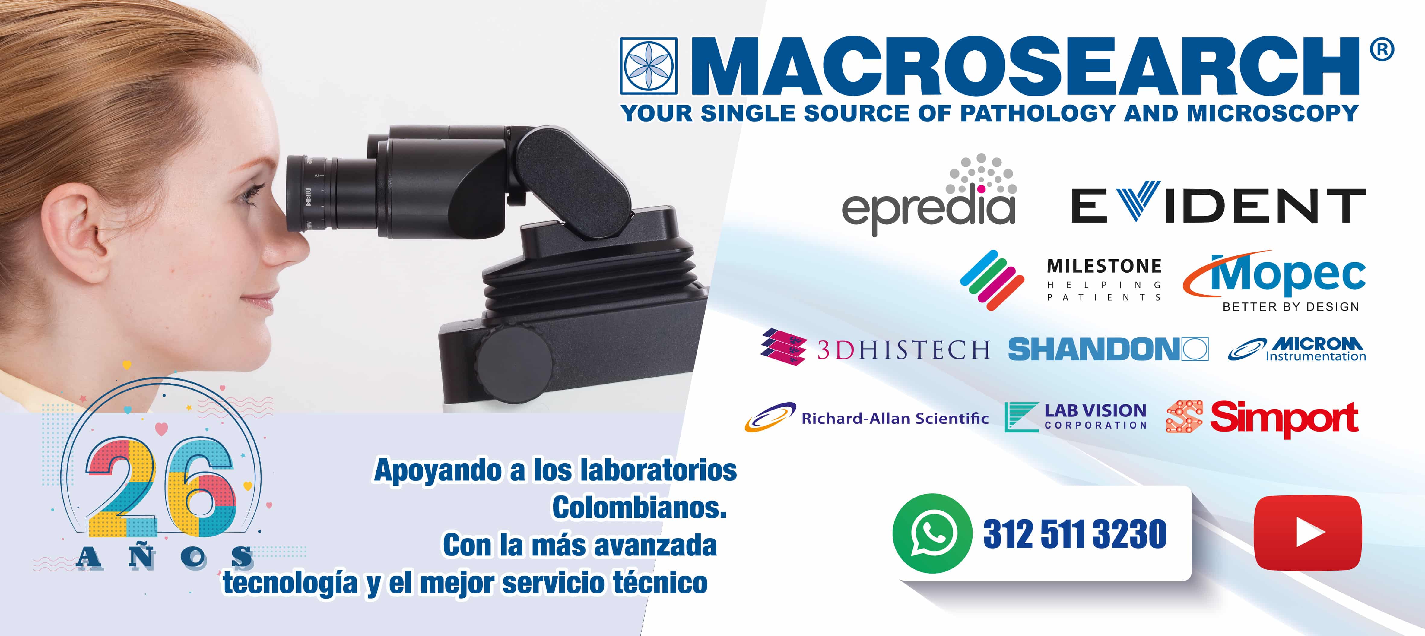 La acogida que hemos obtenido a nivel Nacional durante estos 26 años de trabajo, nos hace líderes en los Laboratorios, ya que contamos con las mejores distribuciones de esta área para Colombia: EPREDIA THERMO FISHER SCIENTIFIC AP SHANDON LABVISION RICHARD ALLAN SCIENTIFIC – MILESTONE – EVIDENT OLYMPUS LIFE SCIENCE – EVIDENT OLYMPUS INDUSTRIAL MICROSCOPES – SIMPORT – MORTECH, reconocidas todas como las MEJORES MARCAS a nivel MUNDIAL.